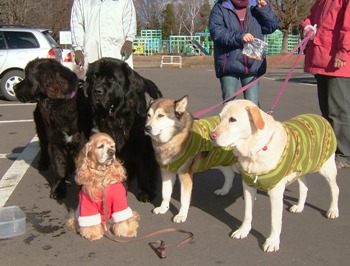 大型犬に囲まれると小さく見える悟天ですが、態度はデカイよ(≧m≦)