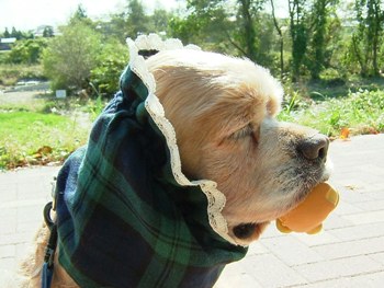 お散歩に行かなきゃと重い腰を上げ、お昼近くに嫌がる悟天を
