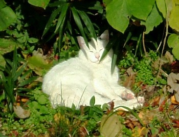 公園下の草むらで日向ぼっこをしているニャンコ発見!