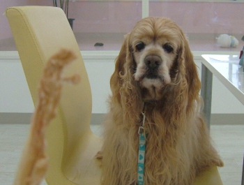 ごっちゃん、なぜか椅子に乗っちゃってお座り(爆)