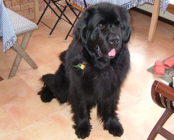 看板犬のニューファンのウメちゃんに一度会いたかったんだって。