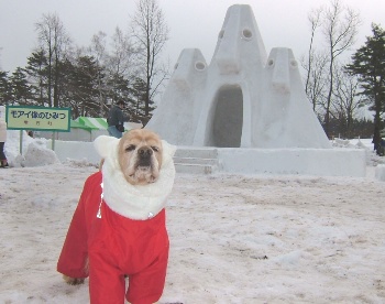 雪像をバックに撮るのは大変でした。